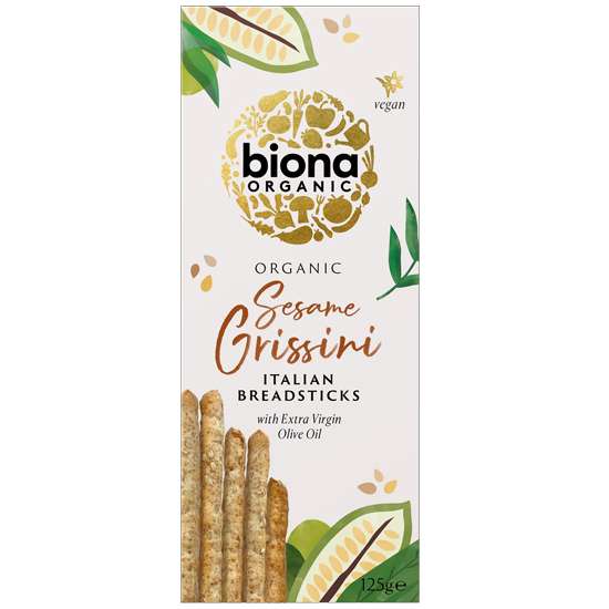 Λεπτά και τραγανά, φτιαγμένα με βιολογικό ιταλικό αλεύρι σίτου, σουσάμι και έξτρα παρθένο ελαιόλαδο, τα Κριτσίνια με Σουσάμι είναι ιδανικά για να τα απολαύσετε σκέτα ή να τα σερβίρετε ως ορεκτικό μαζί με χορτοφαγικά αλλαντικά και τα αγαπημένα σας ντιπ. Πλούσια σε φυτικές ίνες & vegan.