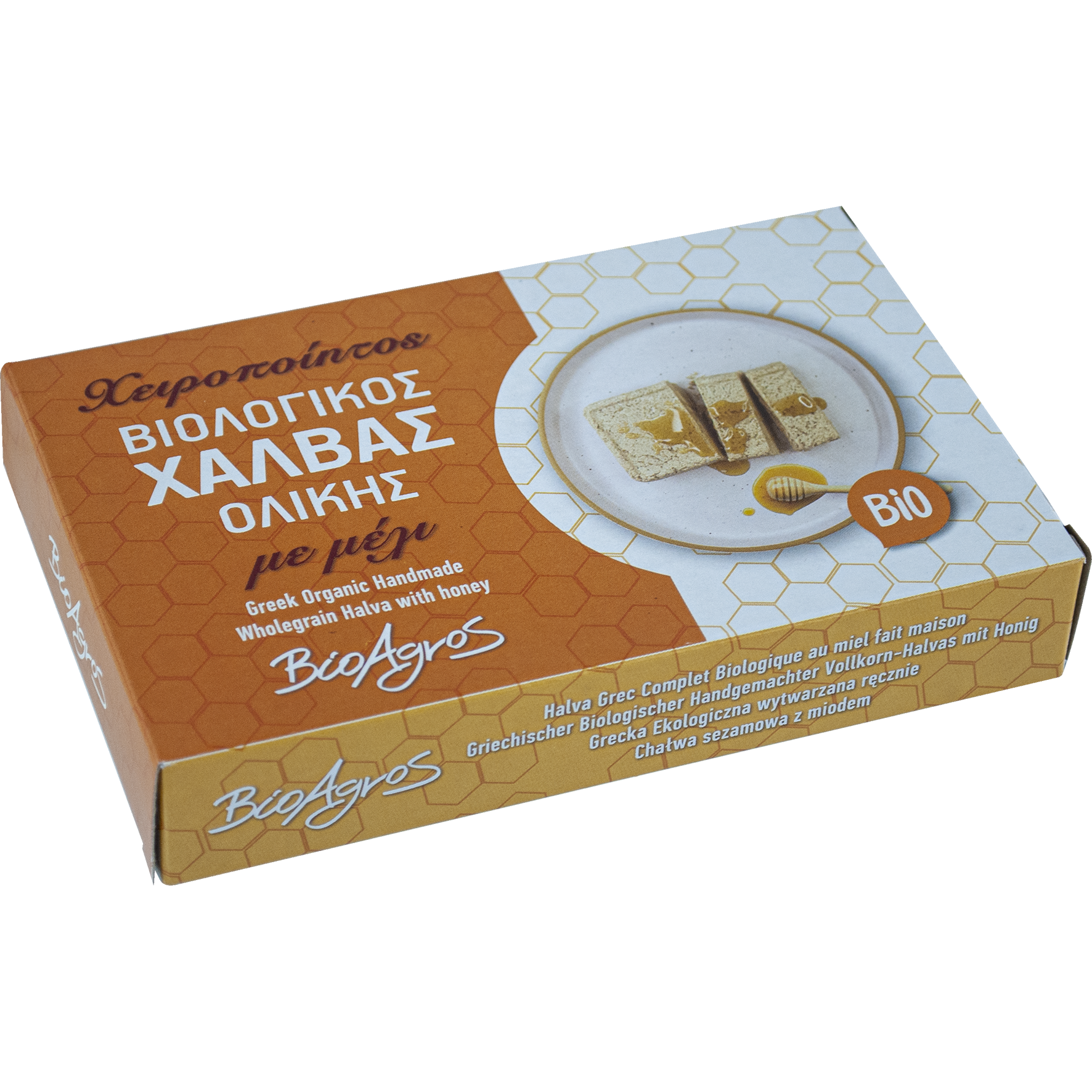 Ο χαλβάς Βιοαγρός είναι γευστικός, θρεπτικός, και αποτελεί ένα ιδιαίτερα νόστιμο παραδοσιακό ελληνικό γλυκό που φτιάχνεται χειροποίητα από φυτικά συστατικά. Παράγεται από ταχίνι (αλεσμένο σησάμι) με την προσθήκη ξηρών καρπών, κακάο, μελιού ή βανίλιας. Πρώτη επιλογή στις παραδοσιακές νηστείες αλλά και ιδανικό γλυκό μετά το γεύμα ή το δείπνο και με τον καφέ.